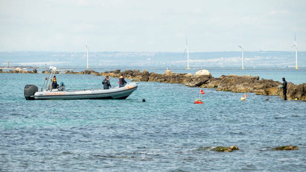 I militari della Guardia Costiera di Taranto hanno supportato il gruppo Team Arrow Pescasub con una Motovedetta ed un Gommone nelle azioni di rimozioni di una rete lunga centinaia di metri che da giorni sostava pericolosamente vicino a scogliera e spiaggia.